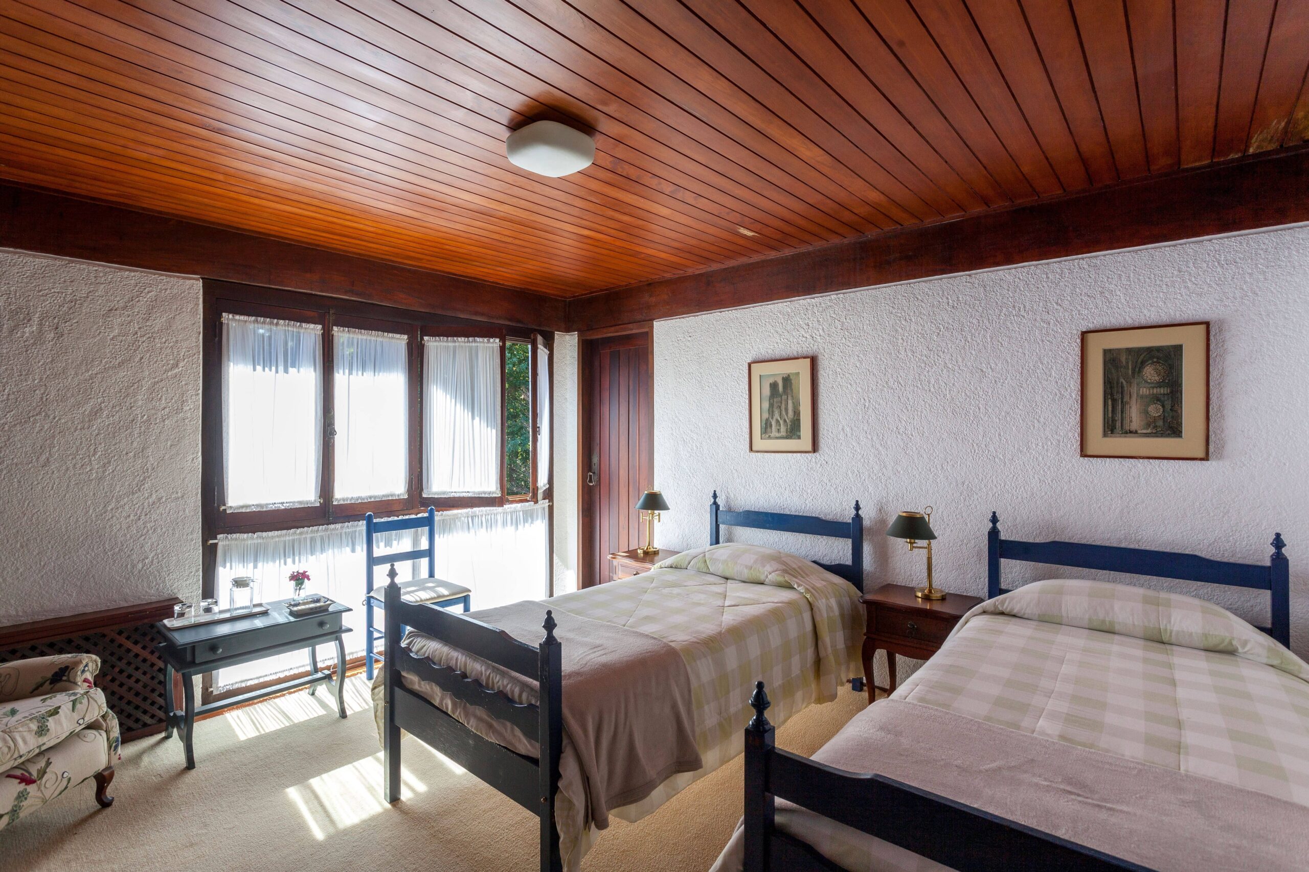 Não à toa, todos os detalhes foram pensados para aproveitar o visual privilegiado deste terreno de dez alqueires, próximo à região do Toriba. O jardim, por exemplo, ganhou centenas de árvores, glicínias e outras flores da estação, mas também trilhas e bancos em cantos estratégicos para apreciar as montanhas. Em um dos caminhos, os visitantes descobrem uma ducha de água natural gelada e direto da fonte, perfeita para recarregar as energias.