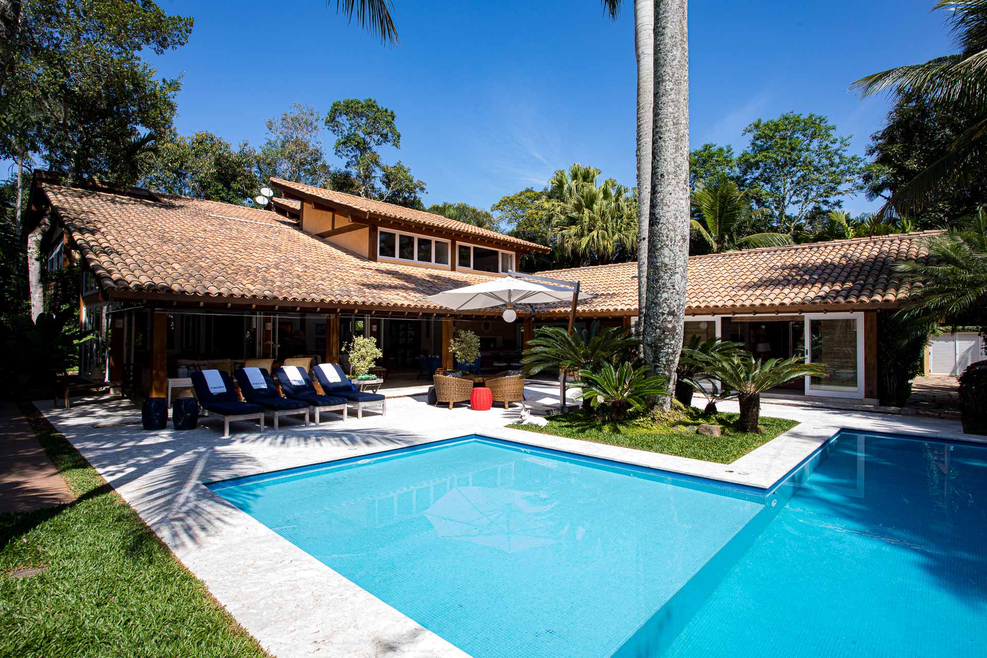 O projeto ajuda a aumentar ainda mais a sensação: ampla e iluminada, a sala se integra ao terraço, que se junta à piscina e à área gourmet, tudo para oferecer ao máximo bons momentos de convivência. E como não se encantar pela decoração cheia de bossa que alegra os ambientes? Aqui, tudo é pensado nos mínimos detalhes para oferecer uma temporada com o máximo de conforto e, claro, aconchego.