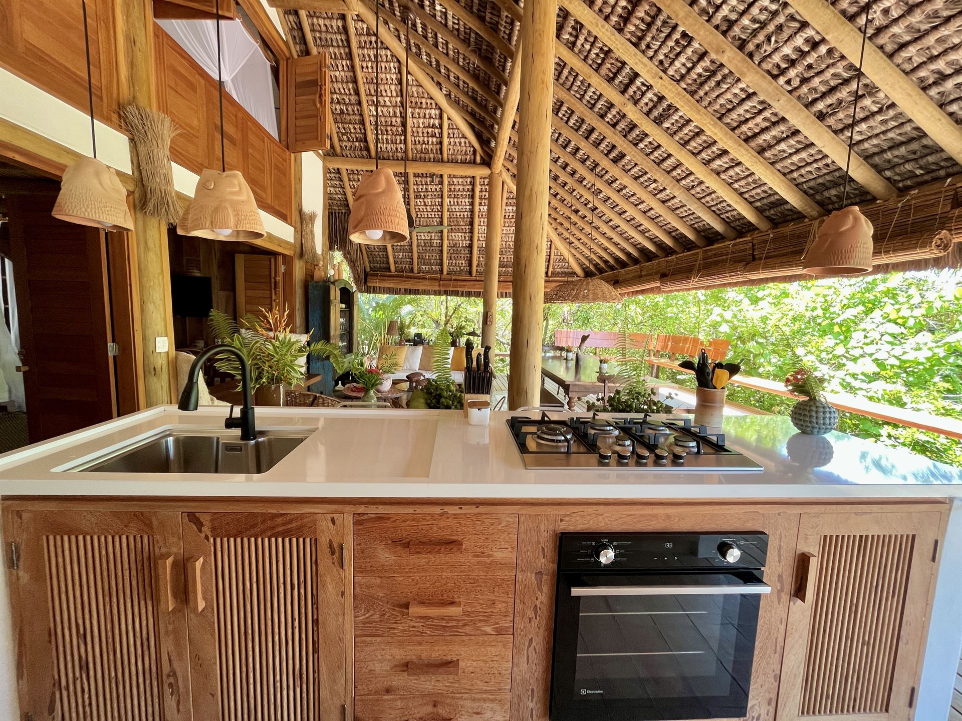 Depois de passar o dia pé na areia – a villa 1 fica a 50 metros do mar e conta com apoio de praia –, é o melhor lugar para descansar entre bons amigos ou família. Novo e muito bem cuidado, o bangalô tem uma varanda debruçada sobre a encosta e integrada à cozinha, que oferece finais de tarde deliciosos.