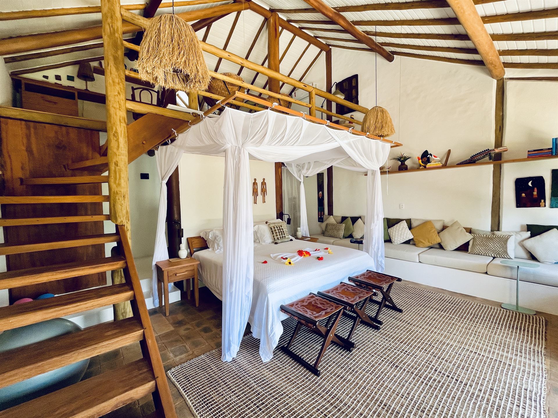 Para quem não resiste à boa brisa da Bahia, mas prefere refúgios mais práticos e compactos, a villa 1 é imperdível. Com vista para o mar, o bangalô faz parte de um charmoso condomínio que, por sua vez, fica dentro do Outeiro das Brisas, um lugar paradisíaco entre Caraíva e Trancoso.