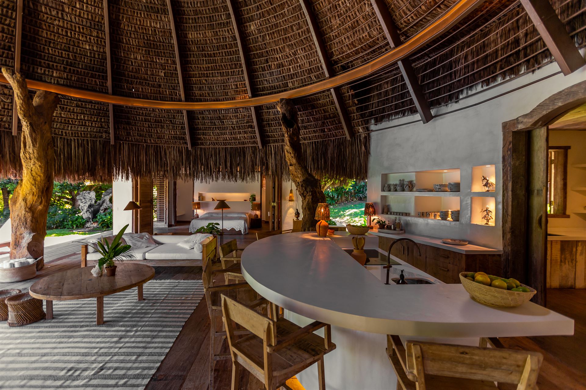 Para completar, o premiado projeto de iluminação adiciona um toque especial à propriedade. Com teto de palha, a oca principal ganhou um âmbar de vidro, responsável por criar um jogo de luzes inesquecível, que acompanha o movimento do sol – e da lua – dia após dia.