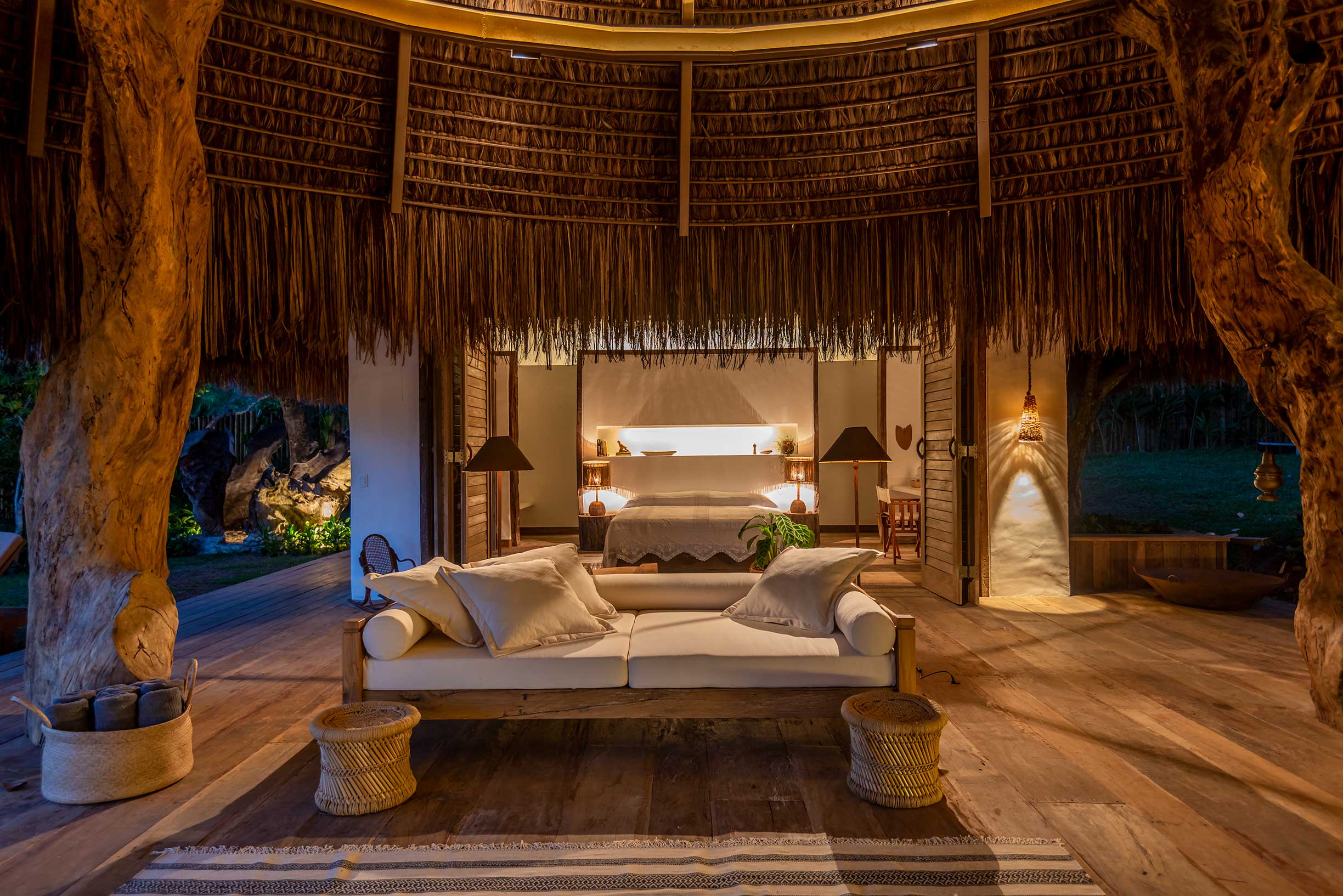 The villa’s lighting has won awards and creates a warm, homely ambience. The thatched dome roof has a skylight which attracts light from the sun and moon, creating different ambiences throughout the day. All this combines to create a heavenly atmosphere, making your holiday in Bahia all the more special.