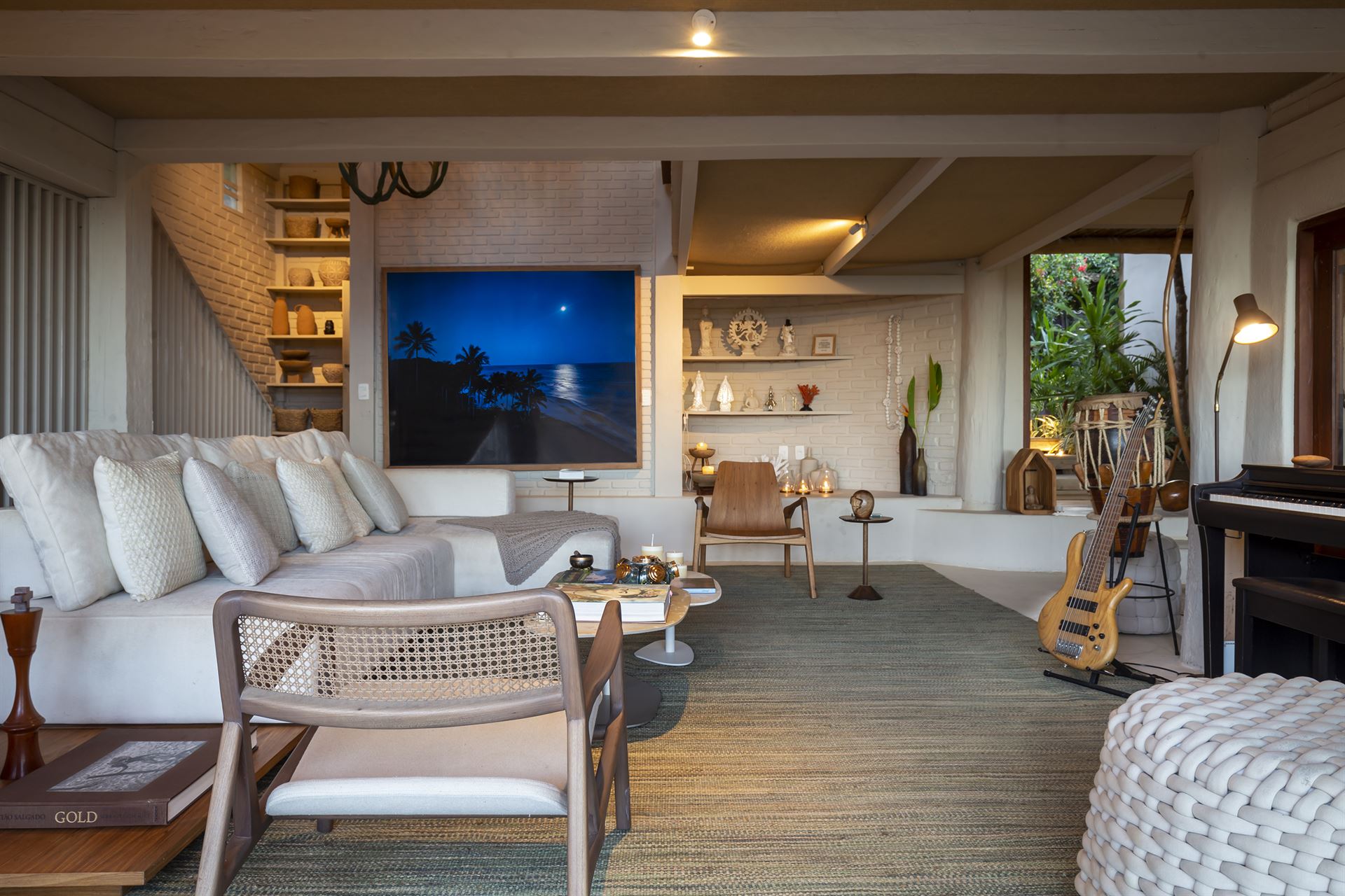 A cozinha, portanto, é integrada à uma deliciosa área de estar onde tudo acontece – e todos se reúnem – seja qual for a hora do dia. Do café da manhã embalado pela brisa às noites de pizza sob o céu estrelado, o ambiente é um convite para esquecer da vida lá fora e embarcar no ritmo tranquilo da Bahia. E, como não poderia deixar de ser, o cardápio destas e de todas as outras refeições pode ser assinado pela chef, que há muitos anos comanda um dos melhores restaurantes do destino, o Capim Santo.