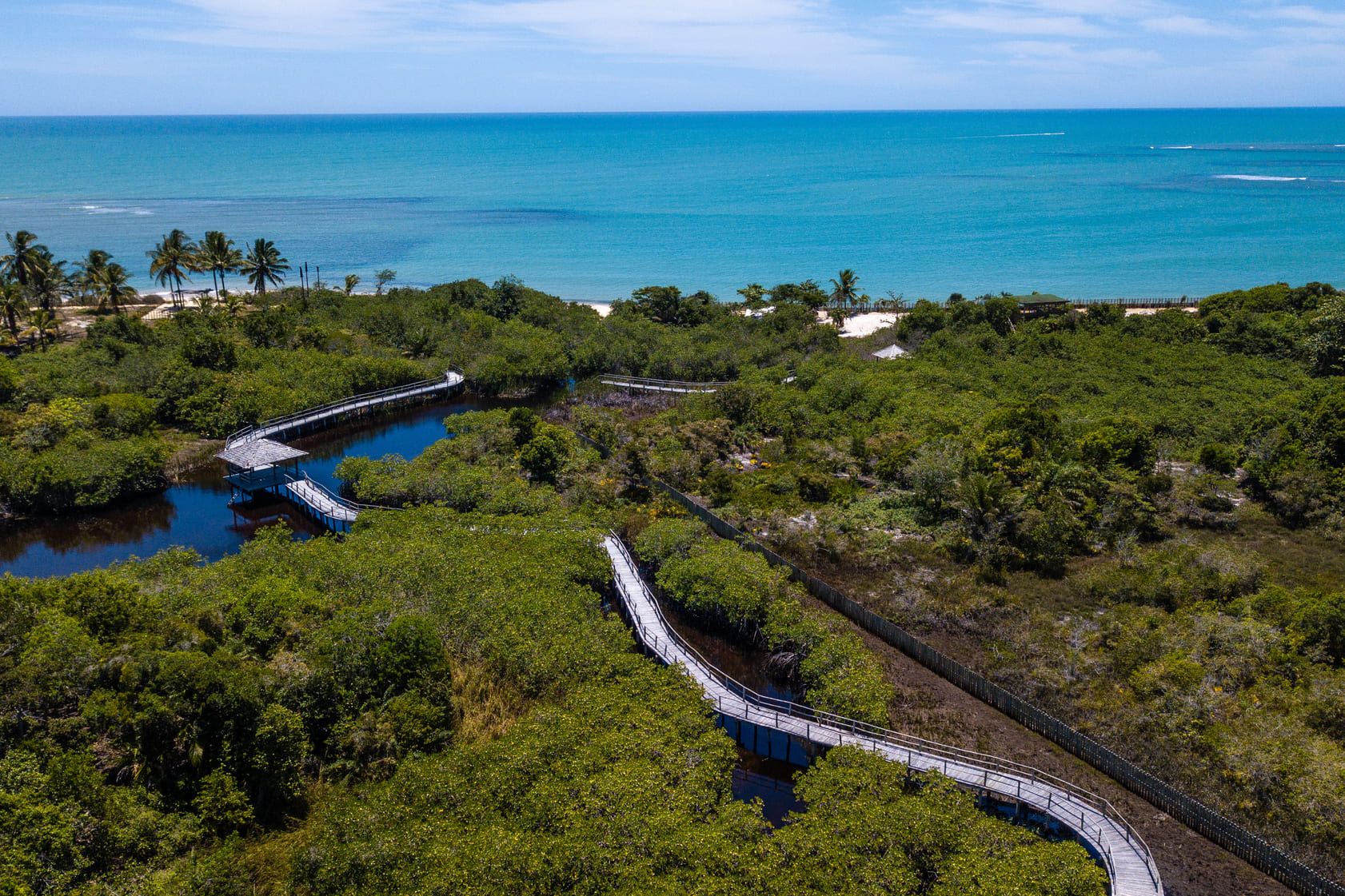 A chegada, digna de filme, impressiona e deixa claro que trata-se de uma experiência diferente de Trancoso, totalmente voltada para o verde. E aqui vale um parênteses: todas as árvores, assim como as diversas espécies de macacos e pássaros, foram catalogadas para fazer jus a um cenário tão especial. Há, ainda, um apiário onde são cultivadas algumas espécies de abelha.